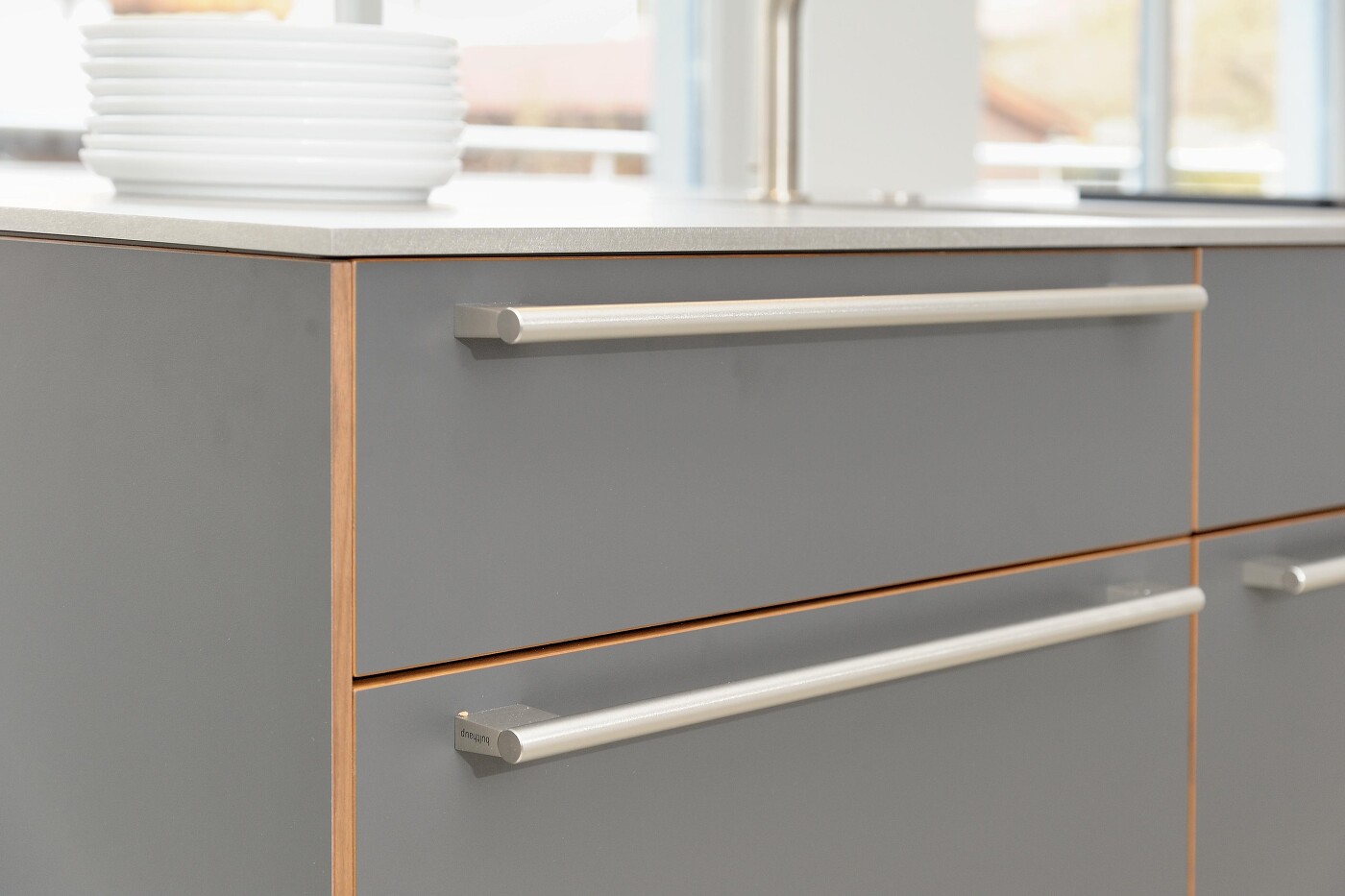 Aber auch Quarzstein ist in 12 mm Stärke zu haben, nicht nur in 38 mm. Edle Dünnplattenoptik gibt es aber auch als hochwertige Schichtstoff-Vollkernplatte mit melamingebundenem Hochdrucklaminat.