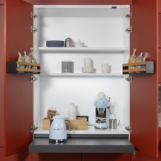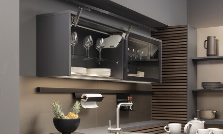 Bei Schränken oder Regalen, die über der Arbeitsfläche angebracht sind, sind Lichtbandsysteme für Leuchtstofflampen direkt unter den Hängeschränken ideal. Möglich sind Spots genauso wie Systeme zur großflächigen Beleuchtung. Angeboten werden auch Hängeschränke mit integrierter Beleuchtung über einem verglasten Boden, sodass der Küchenschrank zusätzlich von innen erstrahlt. Viele Lösungen lassen sich auch nachträglich noch installieren: Fragen Sie uns!