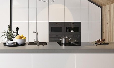 Genau auf Maß geschnittene Küchenmöbel schöpfen das vorhandene Platzangebot natürlich bis in die Ecken optimal aus. Unterschränke können nach hinten hin ggf. angeschrägt werden, um den Stauraum unter schrägen Wänden nutzbar zu machen. In den meisten Fällen wird unterm Dach die Stirnseite genutzt, um eine Küchenzeile zu platzieren. Hier sind – zumindest nach hinten hin – keine Anpassungen nötig.