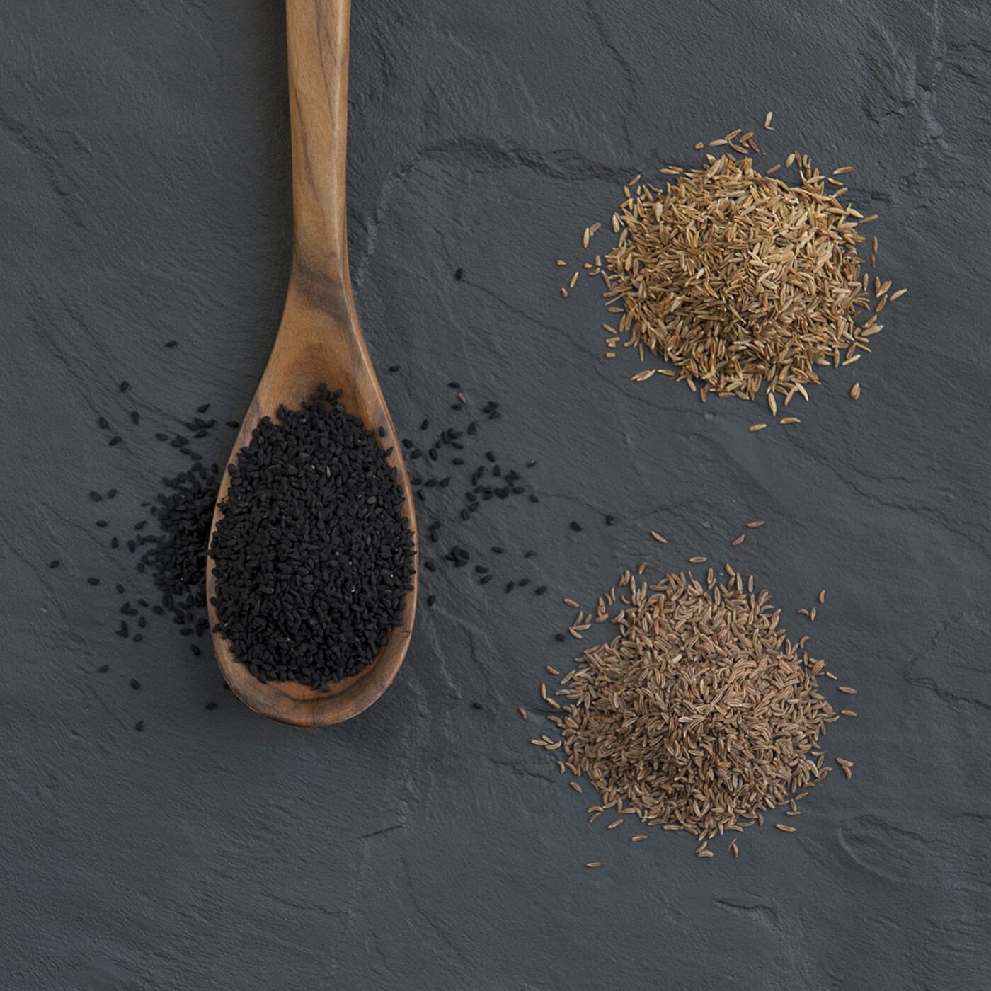 Carum Carvi, der „echte oder Wiesenkümmel“, ist ebenso gut Heilpflanze wie Gewürz. Er regt die Verdauung an und lindert das Völlegefühl. Deshalb setzt man ihn gerne bei schwerverdaulichen Speisen wie Sauerkraut, fettem Schweinebraten aber auch Hülsenfrüchten ein. Kümmel ist appetitfördernd und hat außerdem antibakterielle Eigenschaften.