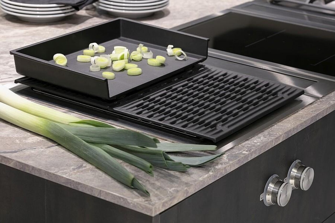 Wenn auch Sie in dieser Art braten möchten, haben wir eine gute Nachricht für Sie: Es gibt Kochfeld-Systeme, bei denen eine Teppanyaki-Platte bereits integriert ist. Dazu empfehlen wir einen leistungsstarken, aber leisen Dunstabzug oder eine Muldenlüftung.